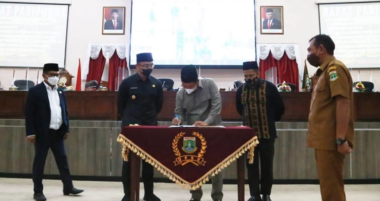 SERANG – Wakil Gubernur Banten Andika Hazrumy secara resmi menyampaikan Rancangan Peraturan Daerah tentang Rencana Tata Ruang Dan Wilayah atau Raperda RTRW 2022-2042 dalam Rapat Paripurna DPRD Banten dengan agenda tersebut, di gedung DPRD Banten, Kawasan Pusat Pemerintahan Provinsi Banten (KP3B), Selasa (15/2).