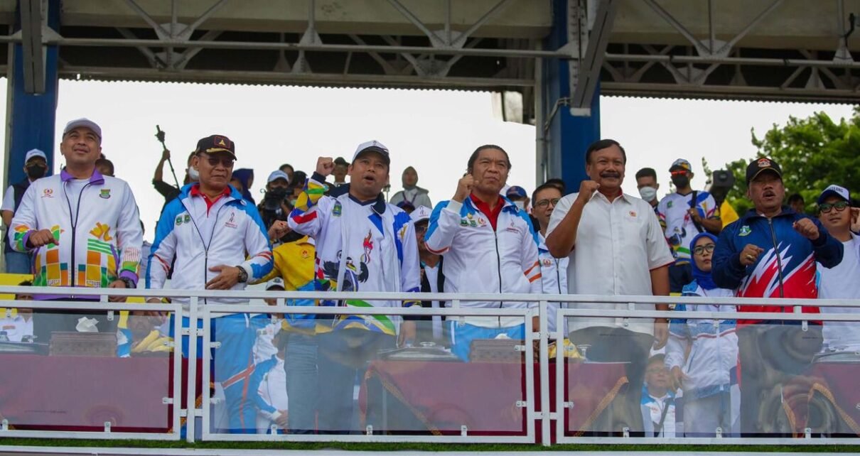 Penjabat (Pj) Gubernur Banten Al Muktabar membuka pelaksanaan Pekan Olahraga Provinsi (Porprov) VI Tahun 2022 di Stadion Benteng Rebound, Kota Tangerang, Minggu (20/11/2022). Porprov yang digelar empat tahun sekali itu diharapkan dapat mencetak atlet-atlet berprestasi, generasi emas yang unggul.