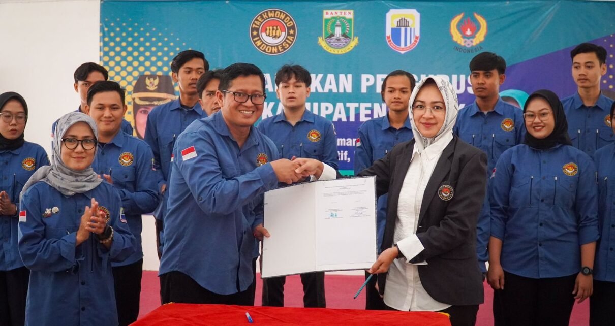 Ketua Umum Pengurus Provinsi (Pengprov) Taekwondo Indonesia (TI) Banten, Airin Rachmi Diany resmi melantik kepengurusan Taekwondo Indonesia Kabupaten Lebak masa bakti 2022-2026 yang berlangsung di Pendopo Kabupaten Lebak, Rangkasbitung, Minggu (3/9/2023).