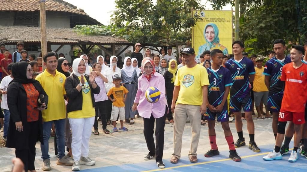 Bakal Calon Gubernur Banten yang diusung Partai Golkar, Airin Rachmi Diany menghadiri sekaligus membuka acara turnamen bola voli Airin Cup 1 yang digelar masyarakat di Kecamatan Pabuaran, Kabupaten Serang, Rabu (20/9/2023).